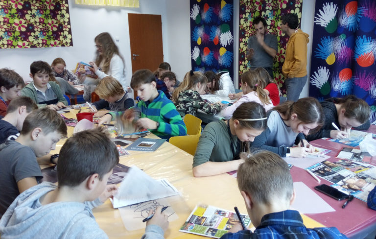 Mestská knižnica pre nich v piatok 8. decembra pripravila prezentáciu knihy Jaroslava Vrchlického Začarovaný tatrmánek. Petr Šrámek, zostavovateľ výberu z Vrchlického poézie pre deti, a ilustrátor knihy Tomáš Klepoch knihu nielen pútavým spôsobom predstavili, ale najmä vytvorili priestor pre spontánnu a pestrú diskusiu. Pridanou hodnotou bol výtvarný workshop, najmladších gymnazistov umelecká aktivita úplne pohltila. Poézia a ilustrácia u nich vyhrali na plnej čiare.