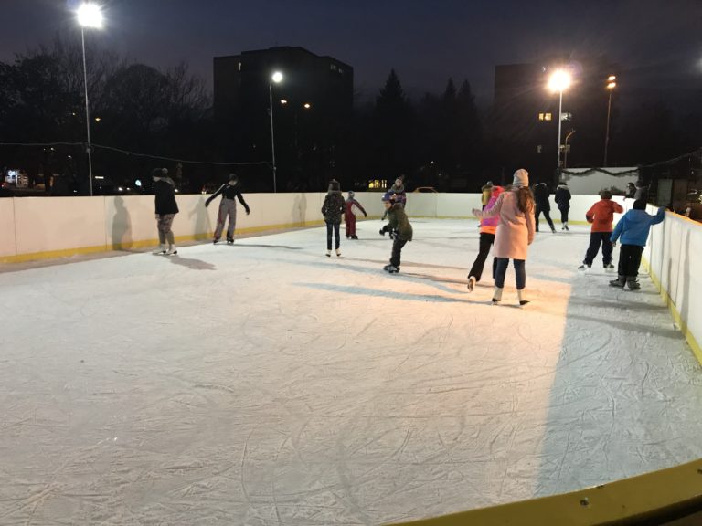 Korčuľovanie na mobilnej ľadovej ploche pri Obchodnom dome Prior je rovnako zdarma. K dispozícii je priestor na prezúvanie.