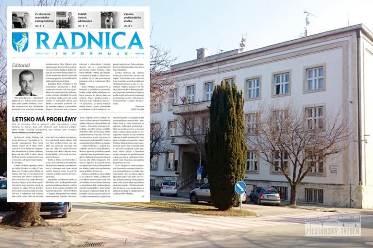 Začiatkom februára Transparency International Slovensko vydala správu, podľa ktorej sa mestské noviny s názvom Radnica informuje podobajú viac na nástroj politickej propagandy súčasného vedenia mesta ako na užitočný spravodajský formát slúžiaci obyvateľom. Spomedzi 82 hodnotených slovenských samosprávnych novín sa piešťanské mestské periodikum umiestnilo až na 65. mieste. Piešťany tak v užitočnosti novín pre obyvateľov vysoko predbehla na druhom mieste krajská Trnava, ale i tretí v poradí neďaleký Hlohovec.