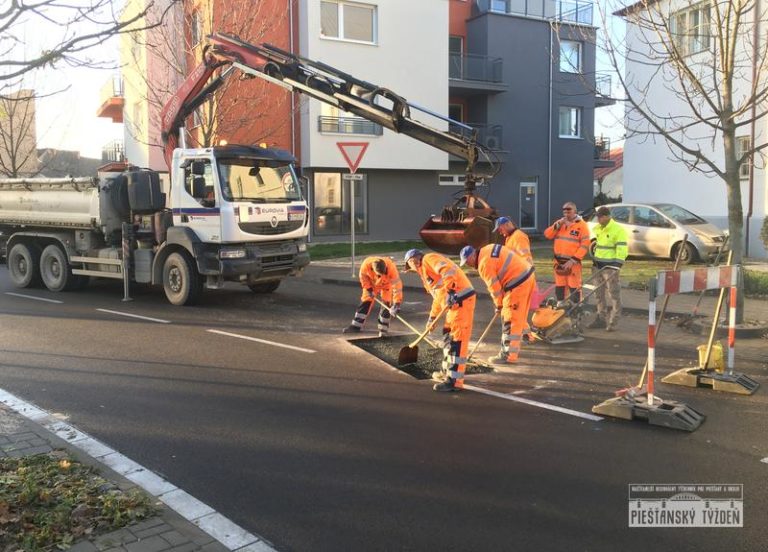 Po kompletnej rekonštrukcii Sládkovičovej ulice v Piešťanoch, na ktorú si mesto vzalo úver takmer 770-tisíc eur, sa na komunikácii v stredu 25. októbra opäť objavili stavebné mechanizmy. Robotníci za ich pomoci vyrezali do asfaltu dve diery – pri Hodžovej ulici a pri križovatke s Meštianskou. Z jám vytŕčali vodovodné uzávery. Tým však práce neskončili, ba práve naopak, iba začali. V priebehu nasledujúceho mesiaca sa na vozovke objavila približne desiatka výrezov. No maslo na hlave má nie Trnavská vodárenská spoločnosť (TAVOS), ako sa mnohí mylne domnievali, ale zhotoviteľ diela spoločnosť Eurovia, ktorá poškodila pri naťahovaní asfaltového koberca vodovodné uzávery. Ich opravu si Eurovia objednala u TAVOSu, preto bolo možné vidieť na Sládkovičovej aj „tavosákov“.