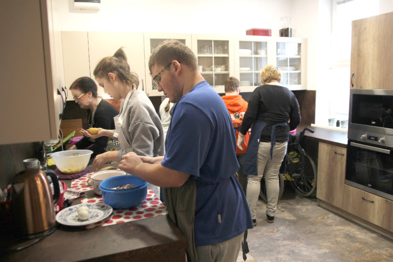 Vo výbave nechýbajú nízko umiestnené spotrebiče, pracovná doska či umývadlo pre vozičkárov. V kuchyni sa deti učia zdravo a nutrične variť, používať spotrebiče či umývať riady v umývačke. Súčasťou linky je práčka, deti majú možnosť oboznámiť sa s praním, vešaním aj žehlením bielizne.