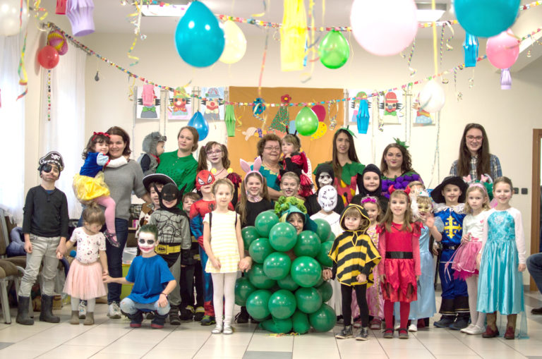 Vstupenkou na karneval bolo jabĺčko. Zamaskované učiteľky sa predstavili ako Ovocníčkovia, ktorí hneď v úvode karnevalu vyspovedali detičky, aký význam majú vitamíny, proti komu „bojujú“.