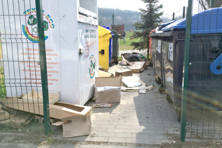 Že sa to každému robiť nechce, bolo evidentné minulý týždeň na Vážskej ulici. V stojisku sa povaľovali veľké kusy kartónov, ktoré sa však cez úzky otvor do kontajnera nepodarilo vložiť, pričom samotná nádoba bola zamknutá.