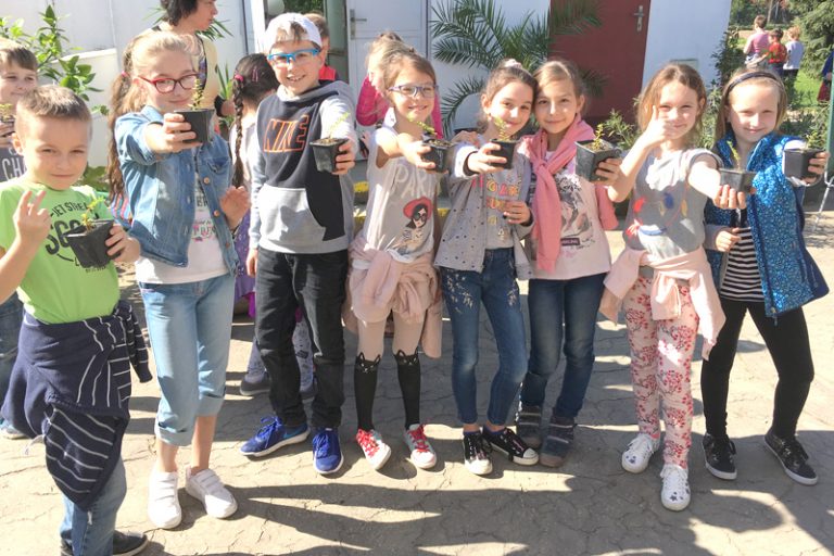 Všetky deti si počas Dňa Zeme mohli zasadiť svoju vlastnú rastlinku a vziať si ju domov. „Tento rok je to pilea microphilla. Je to drobná rastlina, ktorá sa môže pestovať v byte, v triede na okne, ale aj v záhrade,“ povedala E. Stručková. Študentka Kristína Gašová, ktorá deti učila túto nenáročnú rastlinku presádzať, mladých, možno budúcich záhradníkov pochválila za šikovnosť.