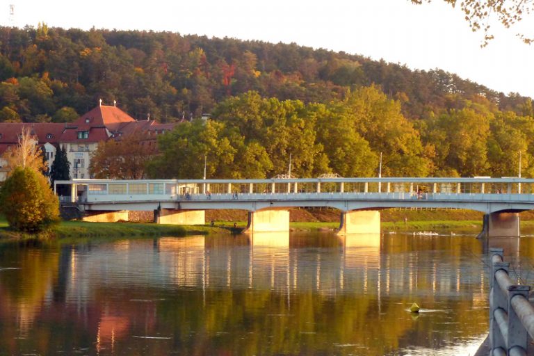 V apríli 1945 nemecká armáda zničila podstatnú časť mosta. Úplne zdemolované boli stredné polia a obidva piliere založené na studniach. Celá nadstavba prístrešku bola vážne porušená. Most bol obnovený podľa pôvodného projektu a v súčasnosti má funkciu kolonádovej pešej zóny do areálu kúpeľov.