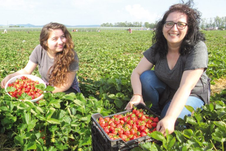 Najskôr na jahody, potom do hrachu zamierila ďalšia partia oberačov z Piešťan – Zuzana Tekulová s Tatianou Vančovou a mladými posilami. „Máme dnes voľno, tak sme ho využili na zber jahôd. Dokonca máme medzi sebou aj maturanta, ktorý práve včera úspešne zmaturoval,“ tešila sa z jahôd i úspechu Z. Tekulová.