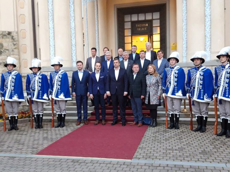 V nedeľu 24. marca podvečer privítal predseda Národnej rady Slovenskej republiky Andrej Danko a primátor Piešťan Peter Jančovič účastníkov stretnutia predsedov parlamentov krajín V4 a Beneluxu na Kúpeľnom ostrove pred hotelom Thermia Palace.