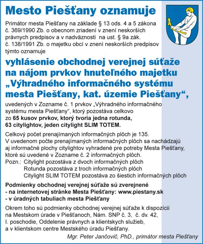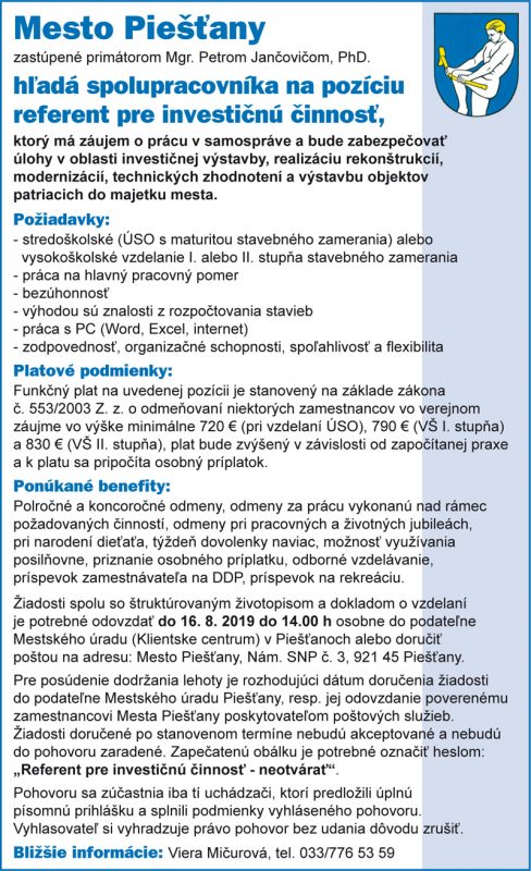 Reklamy z aktuálneho vydania Piešťanského týždňa Inzercia 15. augusta 2019, 20:00 Autor: Alexandra Mathiasová Inzerujte v Piešťanskom týždni. © apt ShareTweet0 Shares