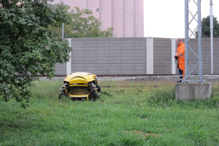 Železničiari v Piešťanoch dnes začali svoj deň kosením. Namiesto partie chlapov, čo zvyčajne kosievala priestor pozdĺž trate na Vrbové smerom k Tesu, si však prizvali jediného pomocníka. Robotickú kosačku. Žltý chrobák pojedal trávu v stredu 25. septembra. Šlo mu to vcelku rýchle.