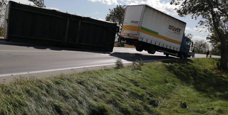 Silný nárazový vietor prevracia aj menej naložené nákladné autá. (Autor: Polícia)