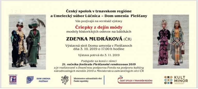 Vo štvrtok 3. októbra budú návštevníkom v Galérii Domu umenia sprístupnené Čriepky z dejín módy. Historické odevy na bábikách z Česka do Piešťan prinesie Zdenka Mudráková. Na slávnostnej vernisáži výstavy sa môžete zúčastniť 3. októbra o 17.00 h.