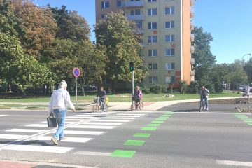V rámci výstavby cyklochodníka na Ulici A. Hlinku v Piešťanoch pribudli na križovatke so Žilinskou cestou aj široké cyklopriechody nakreslené…