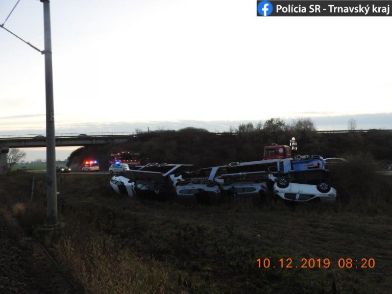 V skorých ranných hodinách sa dnes pod mostom Juhovýchodného obchvatu Trnavy prevrátil kamión plne naložený autami. Jeho vodič z Bosny a Hercegoviny sa nevenoval dostatočne vedeniu vozidla a zišiel mimo cesty, kde sa prevrátil na bok.