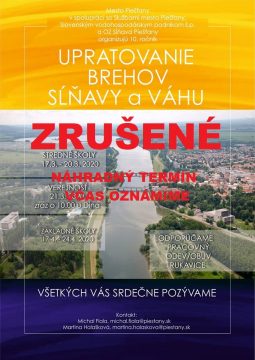 Mesto Piešťany oznamuje, že 10. ročník upratovania brehov Sĺňavy a Váhu plánované v mesiace marec je z dôvodu opatrení prijatých…