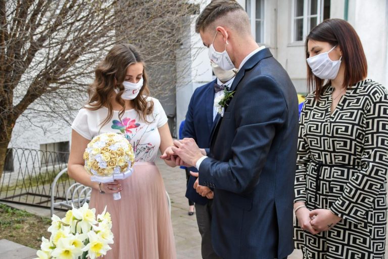Na netradičnú svadbu s ochrannými rúškami Lívia a Filip určite nezabudnú. Svadobný obrad sa konal v piatok 27. marca na dvore mestského úradu a kvôli zabráneniu šírenia koronavírusu, aj so špeciálnymi opatreniami.