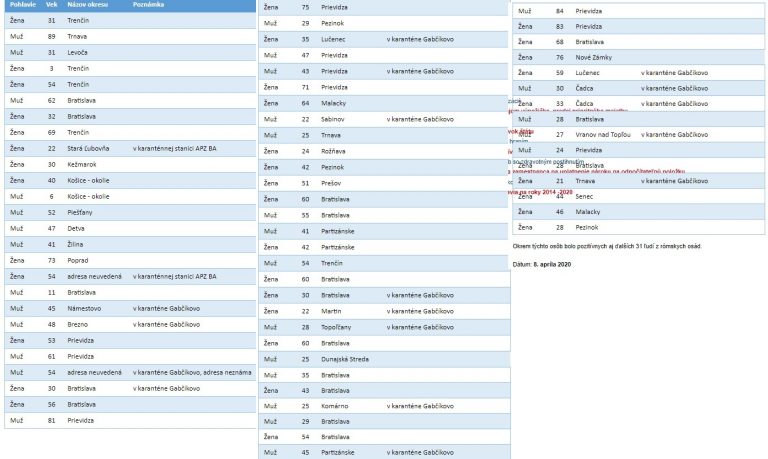 K 70 pozitívnym pacientom za predchádzajúci deň uvádzame dodatočné informácie, 19 pacienti sa nachádzajú v karanténnom centre.