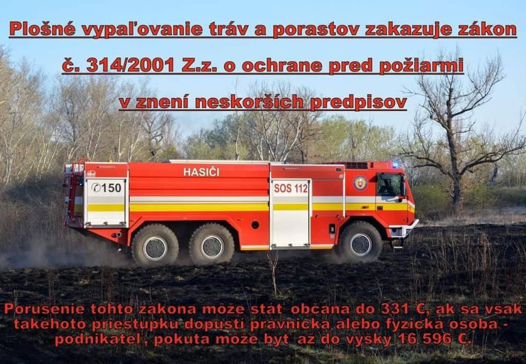 Vonku je veľmi, sucho. Vidíte to aj podľa obuvi znečistenej prachom po pobyte v prírode. V takomto počasí hrozí vysoké riziko vzniku požiaru najmä v prírode, keď si založíme oheň. Stačí jediná iskra, ktorá odfkne z pahreby a požiar je na svete. Buďte preto opatrní a v lesoch či na lúkach si ohník nezakladajte. A na to klasické – staré vypaľovanie tráv úplne zabudnite! Zakazuje to aj zákon! Pokuty sú mastné.