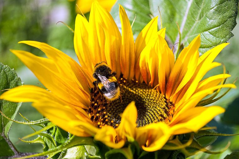 Na slnečnicových poliach sa to v tieto dni len tak hemží včelami, osami, ba aj čmeliakmi. Čmeľ lúčny, huňatý čierno-žltý opeľovač, ktorého sme pozorovali, sa najskôr pohyboval po obvode, akoby lízal peľ, a potom svoj sosáčik zaboril do kvetu hlbšie, akoby ho vysával.