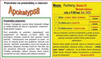 Tri prednášky o Biblii a jej učení sa uskutočnia vždy v stredu o 17.00 h v piešťanskej mestskej knižnici. Vstup…