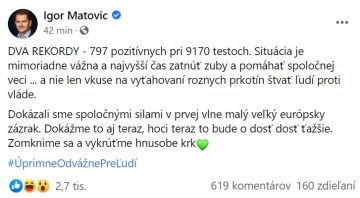 Na Slovensku v stredu pribudlo 797 pozitívne testovaných osôb, urobilo sa 9170 testov. Počet potvrdených úmrtí na pľúcnu formu COVID-19…