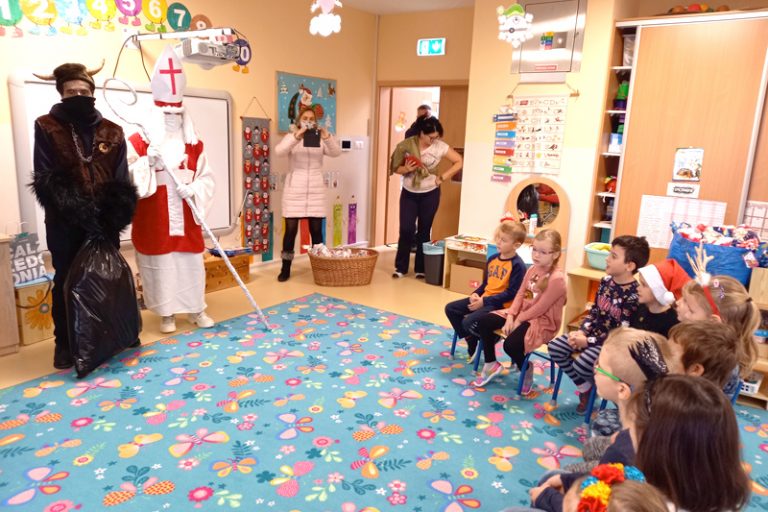 Každá z troch tried škôlkarov zarecitovala spoločnú básničku. Pri pohľade na čerta sa dve deti razom obtočili okolo nôh pani učiteľky. Všetky dievčatá i chlapci prisahali, že poslúchali, a tak čert odchádzal s prázdnym mechom. Naopak, všetky deti dostali od Mikuláša sladké balíčky. Okrem škôlkarov nezabudli ani na staršie deti, a tak mikulášska delegácia zaniesla balíčky aj žiakom prvého stupňa, ktorým ich rozdali ich učiteľky.