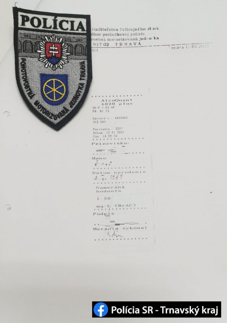 Policajná hliadka krátko po 14.00 h zastavila na Mozartovej ulici v Trnave auto Renault Clio, ktorého vodič jazdil po strede cesty so zapnutými smerovkami. Policajti podrobili 51 ročného muža dychovej skúške. Trnavčan nafúkal viac ako 3 promile alkoholu v dychu. PMJčkári vodiča zadržali a previezli do cely policajného zaistenia. Auto bolo odtlačené na parkovacie miesto a riadne uzamknuté.