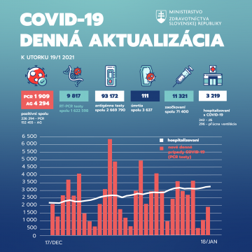 Na Slovensku potvrdili ďalších 1 909 pozitívnych prípadov nákazy koronavírusom, laboratóriá pritom urobili 9 817 RT-PCR testov. Pribudlo aj 111…