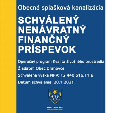 Obec Drahovce získala nenávratný finančný príspevok z eurofondov vo výške 12,4 milióna eur na vybudovanie kanalizácie. Ministerstvo životného prostredia zmenilo…
