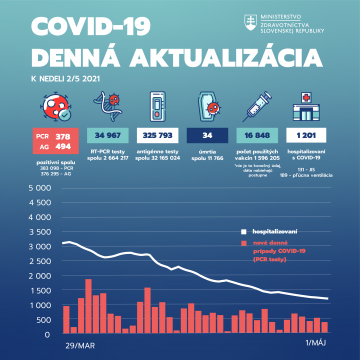 Za sobotu prvého mája odhalili PCR testy 378 prípadov koronavírusu. Vyplýva to z informácii zverejnených na portále covid-19.nczisk.sk. Zároveň pribudlo…