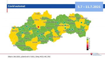 Od pondelka 5.7. bude mať väčšina okresov zelenú farbu, medzi nimi aj ten piešťanský. Informovalo o tom Ministerstvo zdravotníctva SR.
