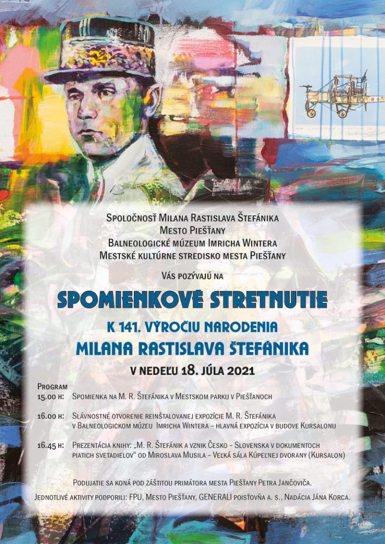 Pri príležitosti 141. výročia narodenia Milana Rastislava Štefánika sa v nedeľu 18. júla o 15.00 h v Mestskom parku v Piešťanoch uskutoční spomienkové stretnutie. Vo veľkej sále Kúpeľnej dvorany bude krst knihy M. R. Štefánik a vznik Česko-Slovenska v dokumentoch piatich svetadielov od Miroslava Musila, diplomata a cestovateľa dlhoročného autora kníh o Štefánikovi.