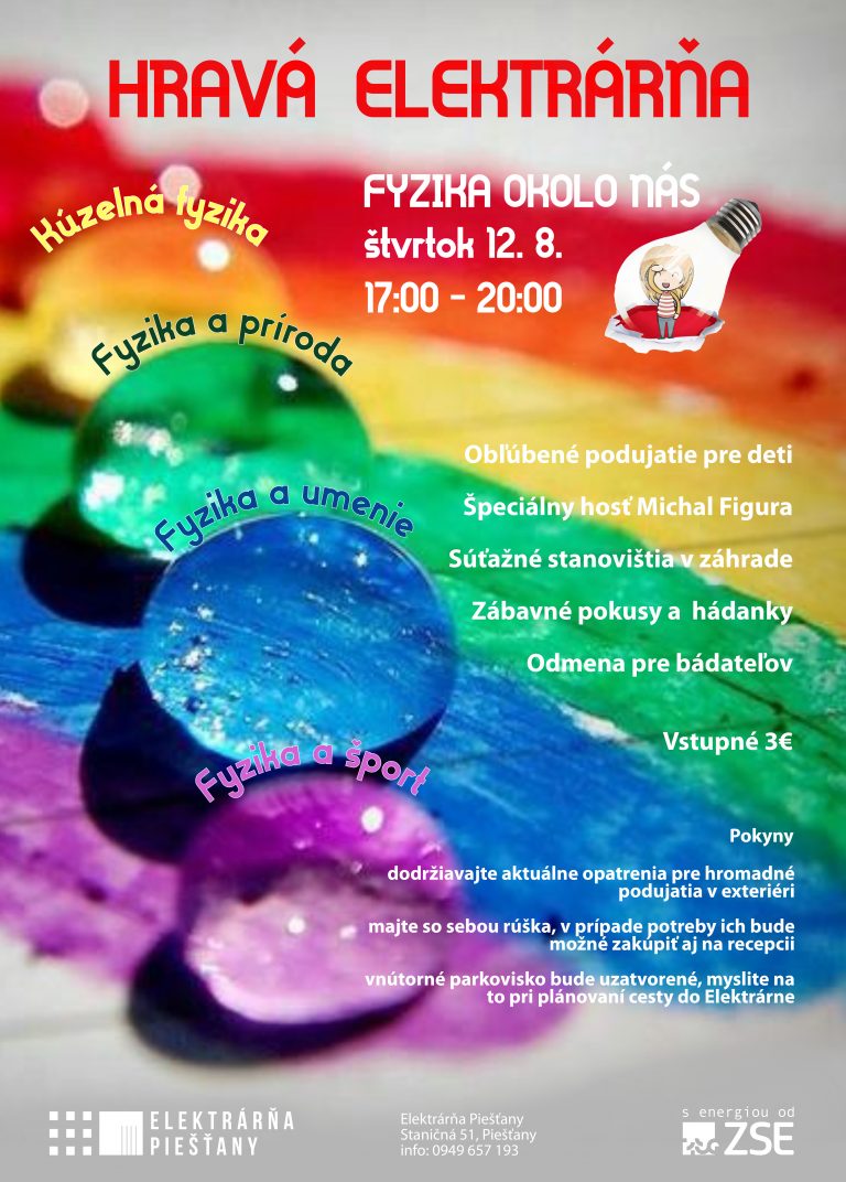 Vo štvrtok 12. augusta sa uskutoční v poradí už piaty ročník obľúbeného rodinného podujatia Hravá Elektrárňa. Témou tohtoročného programu je „Fyzika okolo nás“, mladým návštevníkom ju však tím Elektrárne priblíži zaujímavým a najmä zábavným spôsobom. Na deti čaká päť súťažných stanovíšť, kde si pomocou pokusov a hádaniek predstavia bežné fyzikálne javy. Špeciálnym hosťom podujatia je Michal Figura z Kúzelnej fyziky. Program sa začína o 17:00 a je určený najmä pre deti vo veku 6 – 14 rokov.