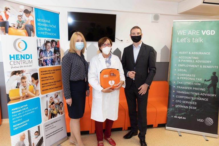Od tohto týždňa nájdete nový prístroj na záchranu života aj v Hendi centre v Piešťanoch. Rehabilitačné zariadenie ho získalo ako dar od poradenskej spoločnosti VGD.