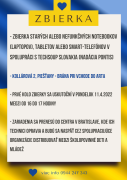 V pondelok 11. apríla sa na vrátnici pri bráne do areálu Arta uskutoční zbierka nefunkčných či starších notebookov, tabletov a…