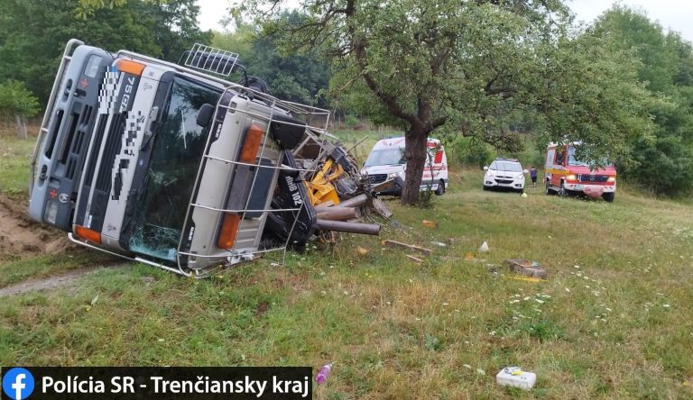 V Priepasnom dostal šmyk a s nákladiakom sa prevrátil