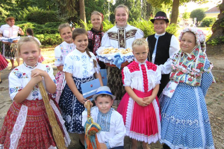 „Potom svatka podá mladomanželom med ako symbol ich budúceho spoločného sladkého života. V Kovačici nevesta vždy obdarúvala najmenšie detičky, súčasťou obradu bol aj tanec s mladou nevestou, pričom prvý ju požiadal o tanec družba. Všetci ostatní si tanec s mladou zaplatia. Posledným tanečníkom je ženích a v závere obaja prebehnú cez dlhý špalier, ktorý tvoria svadobčania, počas behu im títo uštedrujú čo najviac buchnátov. Verí sa, že čím viac buchnátov novomanželia dostanú, tým viac detí sa im narodí,“ usmiali sa krojované dievčatká a ukázali na kočík s bábätkom.