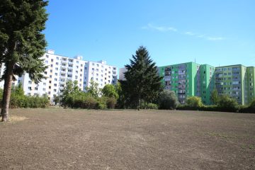 Zbúranie objektu schátranej školy na piešťanskom sídlisku Adam Trajan si obyvatelia okolitých bytových domov pochvaľujú. Pohľad do vnútrobloku medzi domami…