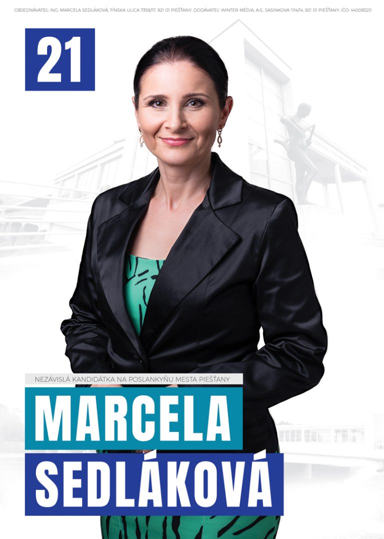 Volám sa Marcela Sedláková, mám 45 rokov a mojím domovom sú Piešťany. Počas svojho pracovného života sa dlhodobo venujem práci s ľuďmi. Pracujem ako riaditeľka odboru sociálnych vecí a rodiny na ÚPSVaR Piešťany. Mám vedomosť o množstve reálnych problémov a skúsenosti v oblasti zamestnávania občanov a spolupráce so zamestnávateľmi, pomoci občanom s ŤZP, nárokov na rôzne príspevky, sociálno-právnej ochrany detí, kurately a následných možnostiach a formách pomoci.