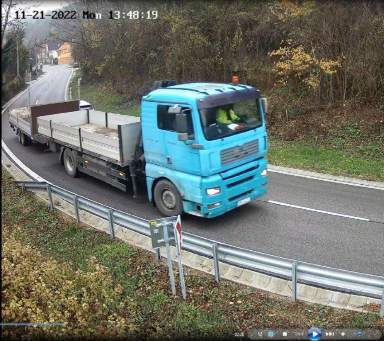 Vodič na aute VW Passat s bratislavským ev. číslom policajtom nahlásil dopravnú nehodu s neznámym vozidlom a vodičom. Podľa kamerových záznamov išlo o nákladné auto zn. Man. Vodič pri prejazde pravotočivej zákruty prešiel s prívesným vozíkom do protismeru, kde došlo k nárazu do zadnej časti osobného auta. Vodič nákladného auta si situáciu pravdepodobne nevšimol a v jazde pokračoval ďalej. Na vozidle vznikla predbežne škoda za 1000 eur.