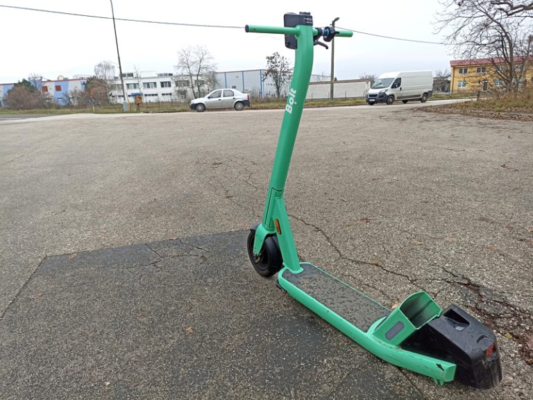 V uplynulom týždni sa nám podarilo nafotiť ďalší takýto „skvost“. Tentoraz síce ako-tak zaparkovaný v strede pomyselného ostrovčeka pri podchode na Vrbovskej ceste, ale kolobežka bola zdevastovaná. Ktosi z nej ukradol zadné koleso a príslušenstvo k nemu. Ostalo tam len nepojazdné torzo.