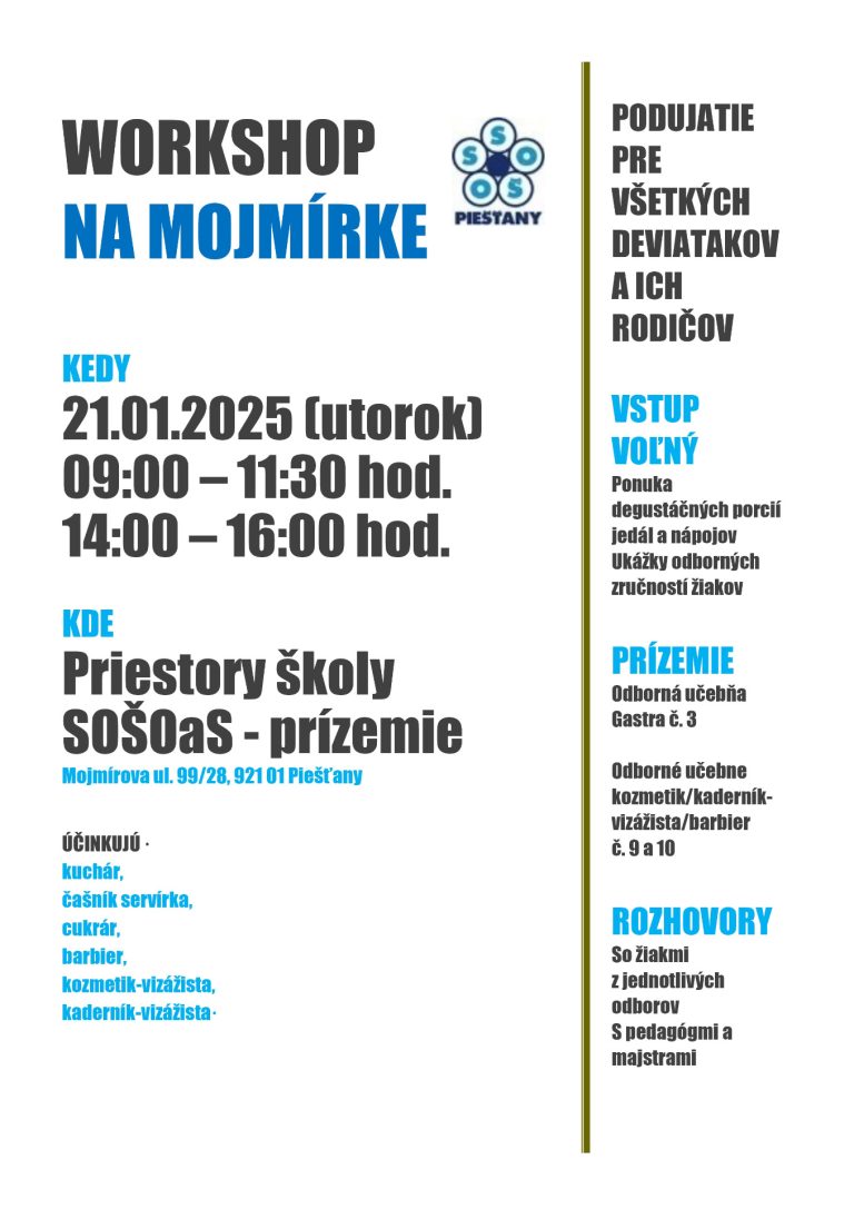 Hľadáš školu? Chceš vidieť, aké remeslo sa môžeš naučiť? Príď 21. januára v čase 9:00 – 11:30 a 14:00 – 16:00 hod. na Mojmírku.