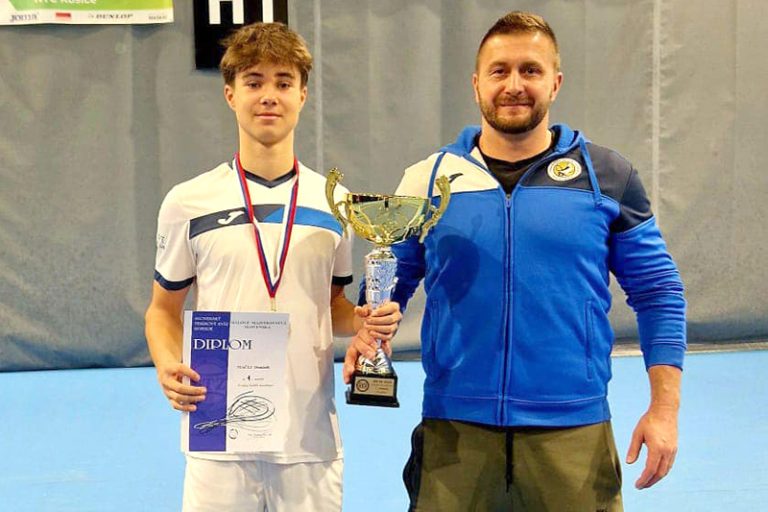 Tenista Dominik Mačej z TK Kúpele Piešťany získal titul v dvojhre aj vo štvorhre na halových majstrovstvách Slovenska mladších dorastencov.