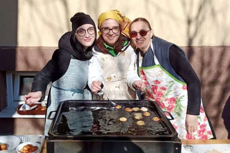 Obecní pomocníci na zabíjačke, ktorá sa konala v sobotu 22. februára, pripravili pečené mäso, klobásky, kapustnicu, jaterničky, tlačenku, paprikové laloky, ale i zabíjačkovú kašu a klasický cibuľový chlieb. Na svoje si prišli aj maškrtné jazýčky, veď ich čakali ešte teplé domáce šišky, ktoré priamo vonku pripravovala starostka Tatiana Julinyová s pomocníčkami.