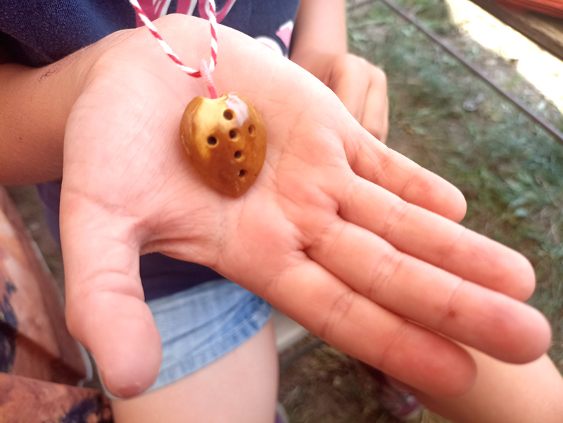 „Kým som prívesky opracoval brúsením a zdobením, celkom som si zničil prsty aj nechty, lebo marhuľovú kôstku najlepšie udržíte prstami,“ smial sa spokojný Pišta. Tak ho volajú všetci hudobníci aj priatelia a rodinní známi. Jeho žienka šikovne prevliekala cez okrúhle očko marhuľového talizmanu šnúrky a viazala ich na primeranú dĺžku približne podľa veľkosti chlapca či dievčaťa.