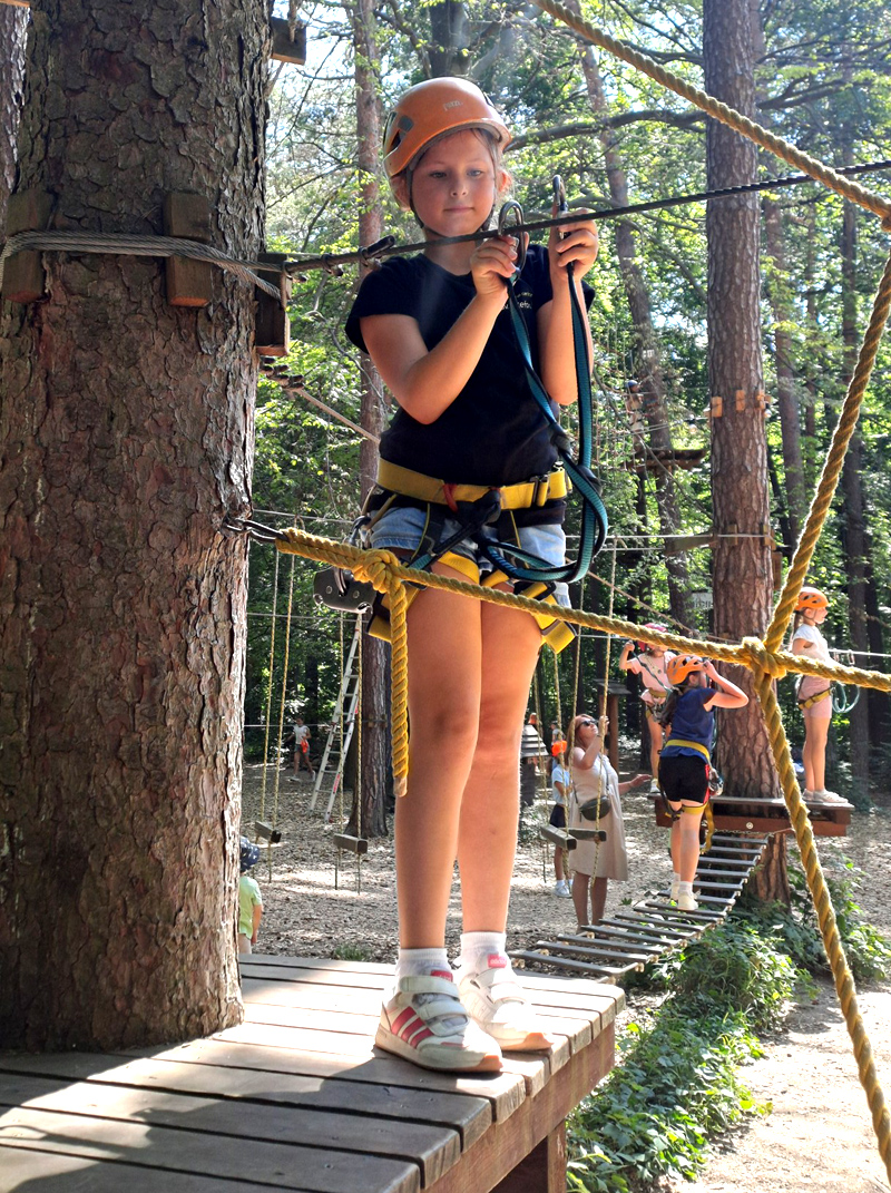 Streda priniesla dobrodružstvo vo veľkom štýle – výlet do Trenčína. Deti s nadšením a horalkami v rukách nastúpili do vlaku, pripravené na deň plný objavov. Prvou zastávkou bol kláštorný kostol Notre Dame s nádhernými nástennými maľbami. Po obede v podobe pizze nasledoval „highlight“ výletu – adrenalínová Tarzania v lesoparku Brezina, kde si hravo poradili s prekážkami a preverili lezecké zručnosti. Nechýbala ani zábava v labyrinte, na preliezačkách či oddych v príjemnom tieni stromov.