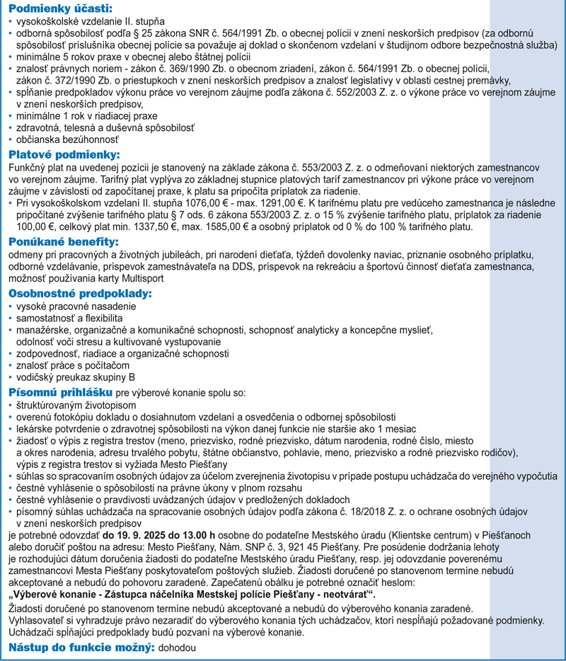 Čo ponúkajú a hľadajú v Piešťanoch a okolí Inzercia 9. septembra 2025, 11:44 Autor: Inzercia Inzerujte v Piešťanskom týždni. © apt ShareTweet0 Shares