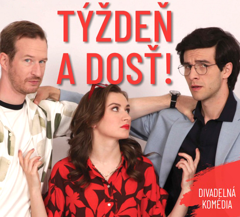 V Dome umenia Slovenskej filharmónie v Piešťanoch si v utorok 14. októbra o 19.00 h nenechajte ujsť divadelnú komédiu Týždeň a dosť! Ide o dielo súčasného francúzskeho dramatika Clémenta Michela, ktorý patrí medzi najúspešnejších autorov komediálnej drámy posledných rokov.
