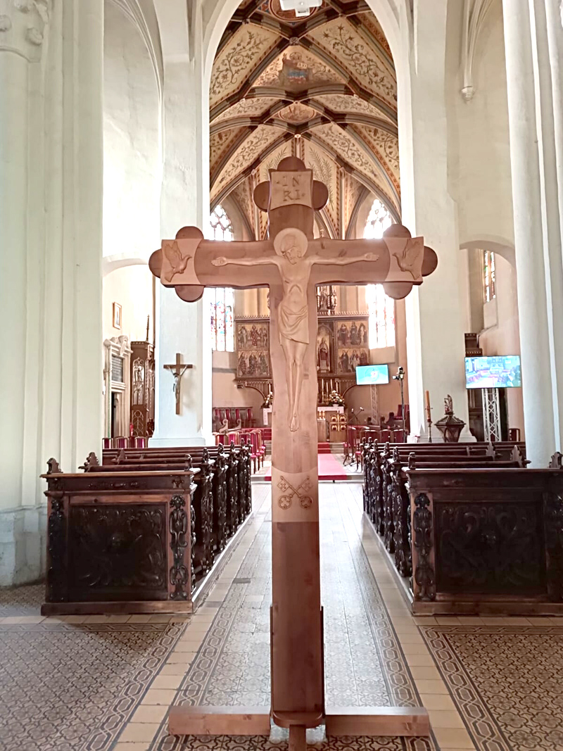 Prvou zastávkou pútnikov bola Levoča, významné centrum Spiša s bohatou históriou a sakrálnymi pamiatkami. V Bazilike sv. Jakuba – jednom z najvzácnejších gotických chrámov na Slovensku – obdivovali hlavný oltár Majstra Pavla, najvyšší drevený gotický oltár na svete. Pri jubilejnom kríži tu odovzdali svoje prosby a modlitby.