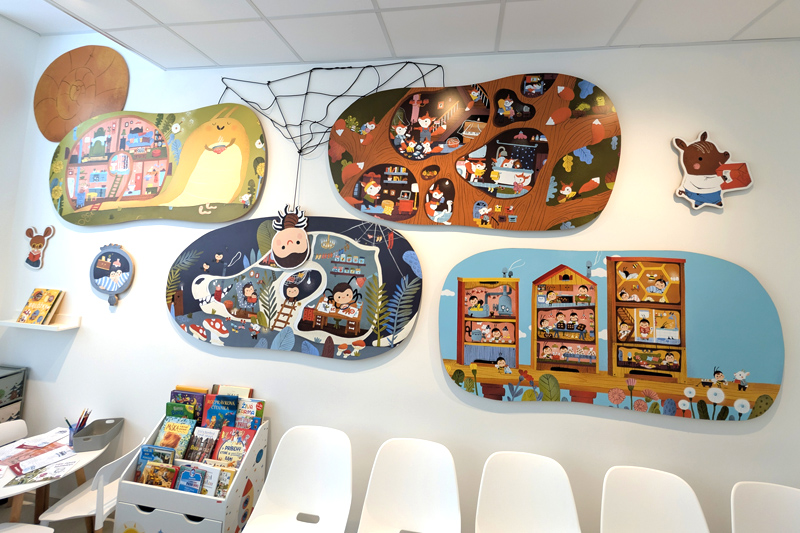 Ambulancie si prevzali dve detské lekárky Ingrida Bernadičová a Hana Hulalová, ktoré zároveň dostali príležitosť slávnostne prestrihnúť pásku na novučičkých a ilustráciami vyzdobených priestoroch pre najmenších pacientov. „Prvým hlavným posolstvom výzdoby je priblížiť deťom ilustrácie a knižky, aby ich čítali spolu s rodičmi. Druhým cieľom je vytvoriť kreatívne priestory na čakanie, ktoré majú zvýšiť komfort hlavne deťom, a tretím cieľom je zabezpečiť deťom a rodičom psychohygienu, aby sa tu lepšie cítili,“ povedal k spôsobu zvolenej výzdoby ambulancií a čakárni autor inštalácií Michal Staško.