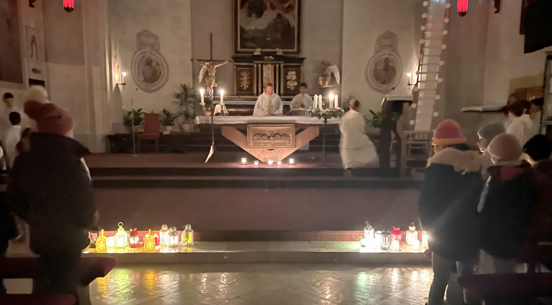 Deti so zapálenými lampášmi vytvorili sprievod a za spevu „Otvorte brány dokorán, prichádza Pán“ vstupovali do tmavého chrámu. Bolo dojímavé sledovať, ako s ich príchodom pribúdalo v kostole svetla. Lampášiky položili pred oltár a začala sa svätá omša. Farár Štefan Gago privítal veriacich a s radosťou poznamenal, že počet lampášikov každým dňom rastie, hoci účasť na rorátoch je dobrovoľná.